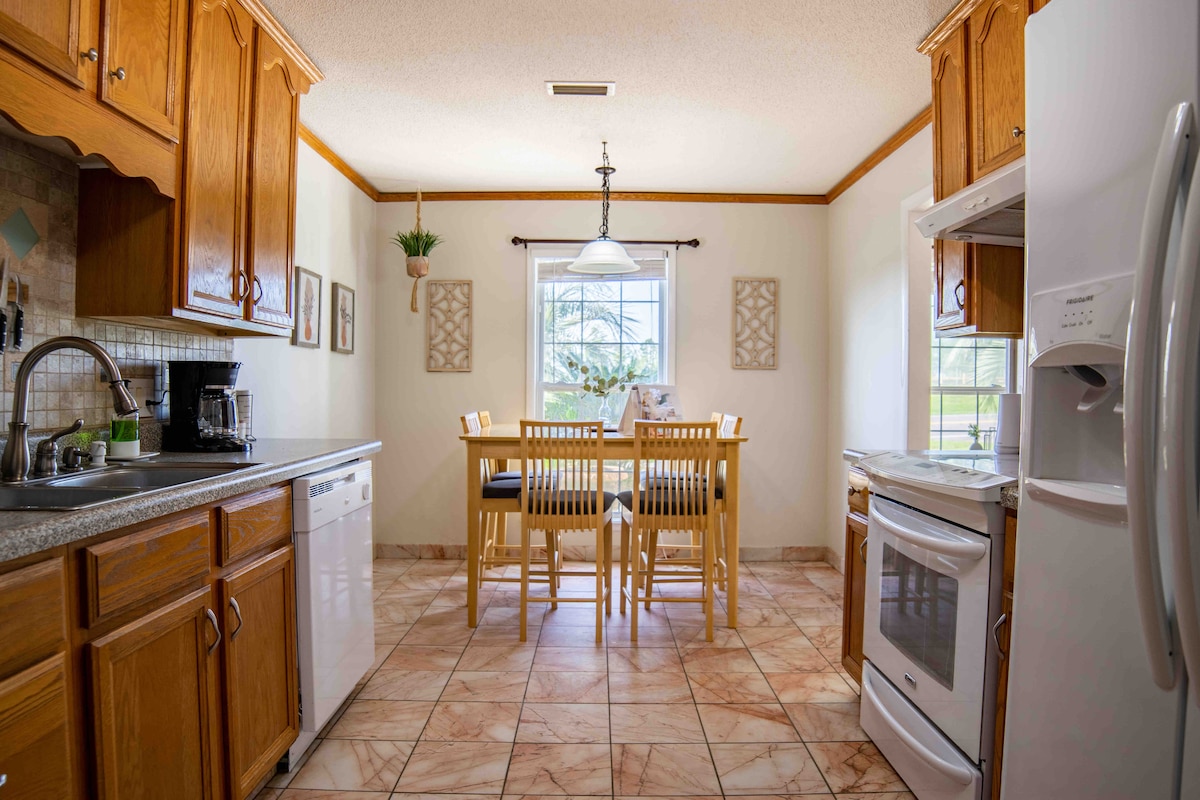 EnterpriseRelax with the whole family at this country home in Enterprise. Enjoy the peaceful ambiance of a spacious backyard filled with charming landscaping and chirping birds! This four-bedroom two bathroom home comes fully equipped with Wi-Fi, a working space, a washer and dryer, a full kitchen, and a spacious backyard. Feel at home in our Country Gardens and enjoy the five-minute drive to downtown Enterprise for shops and restaurants. Also a short 18-minute drive to the FT. Novosel Enterprise gate.
