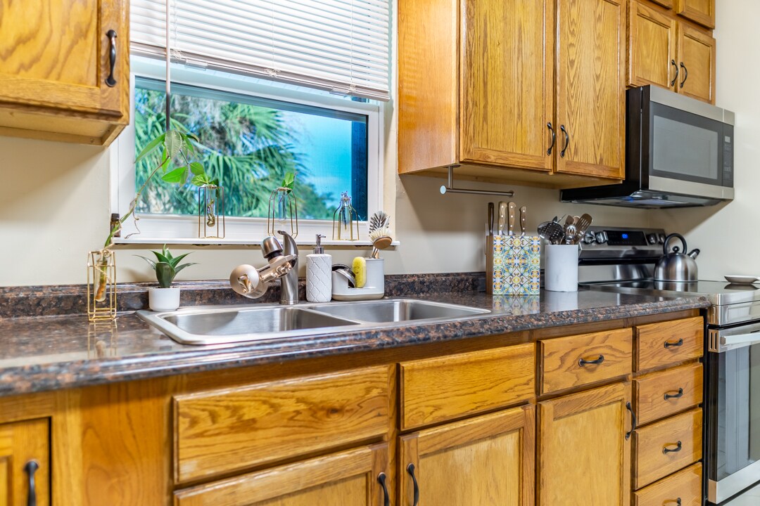 Outside, you'll find a beautiful pool where you can relax and soak up the Florida sun. It also has a BBQ grill and a patio dining area.